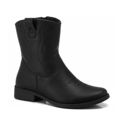 Bota estilo western infantil desenvolvida para oferecer conforto e personalidade aos pequenos. O design apresenta cano médio com recortes característicos do estilo country e costuras decorativas no cabedal, conferindo um visual autêntico e moderno. Fabricada com materiais leves e resistentes, possui fechamento prático por zíper lateral para facilitar o calce no dia a dia. O solado emborrachado garante estabilidade e segurança em diferentes superfícies. Ideal para compor looks criativos, unindo durabilidade e bem-estar para todas as ocasiões.