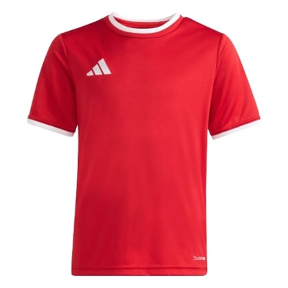 A camisa Entrada26 foi projetada para apoiar o espírito de equipe entre os jovens entusiastas do futebol e complementa um estilo de vida ativo. Com seu design simples, também disponível em tamanhos alongados, é uma opção versátil para jogadores de vários níveis. REFRESCANTE. SECO. PRONTO. O Climacool absorve e dispersa o suor para um desempenho refrescante, seco e sem distrações.O tecido de malha interlock da camisa proporciona ao seu filho movimento irrestrito e conforto no campo de futebol enquanto ele comanda a defesa ou chuta ao gol.