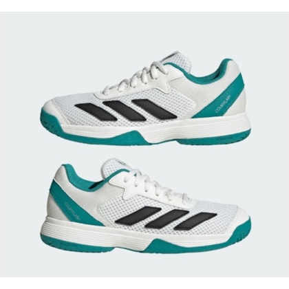 Tênis Courtflash. Calçado para tênis leve feito em parte com materiais reciclados.Os velocistas do tênis precisam de calçado leve e confortável que acompanhe o ritmo do jogo. O tênis Courtflash infantil da adidas tem uma parte superior em malha elástica para um jogo refrescante e uma sola Adiwear durável que resiste facilmente a cortes rápidos e a um trabalho de pés veloz. Não importa se o seu jovem atleta está aprendendo o básico ou já está dominando os saques, este tênis proporcionará o desempenho de que ele precisa em todas as quadras.Este produto apresenta pelo menos 20% de materiais reciclados. Ao reutilizar materiais que já foram criados, ajudamos a reduzir os resíduos, a nossa dependência em recursos não renováveis, bem como a pegada dos produtos que fabricamos.