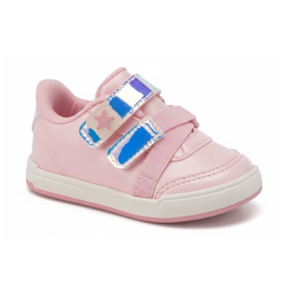 Tênis infantil com design moderno e funcional, ideal para acompanhar as brincadeiras e o dia a dia com máximo conforto. Desenvolvido em material sintético resistente e de fácil limpeza, apresenta um sistema de fechamento prático em fita dupla aderente, garantindo um ajuste firme e autonomia para a criança calçar sozinha. O detalhe holográfico nas tiras e a aplicação de estrela conferem um toque lúdico e estiloso ao visual. Possui solado emborrachado antiderrapante que oferece segurança e estabilidade em diferentes tipos de superfícies.