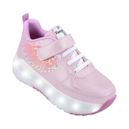 Tênis infantil com rodinha removível e luz de LED no solado, apresentando detalhe lateral em formato de asa holográfica. O modelo possui fechamento prático que combina cadarço elástico e fita dupla aderente, facilitando o calce e garantindo ajuste firme. O cano e a lingueta acolchoados proporcionam conforto, enquanto o solado translúcido destaca a iluminação a cada passo. Une estilo e diversão, permitindo o uso tanto para caminhar quanto para deslizar. Estrutura resistente com acabamento pespontado e puxador traseiro que auxilia no calce.
